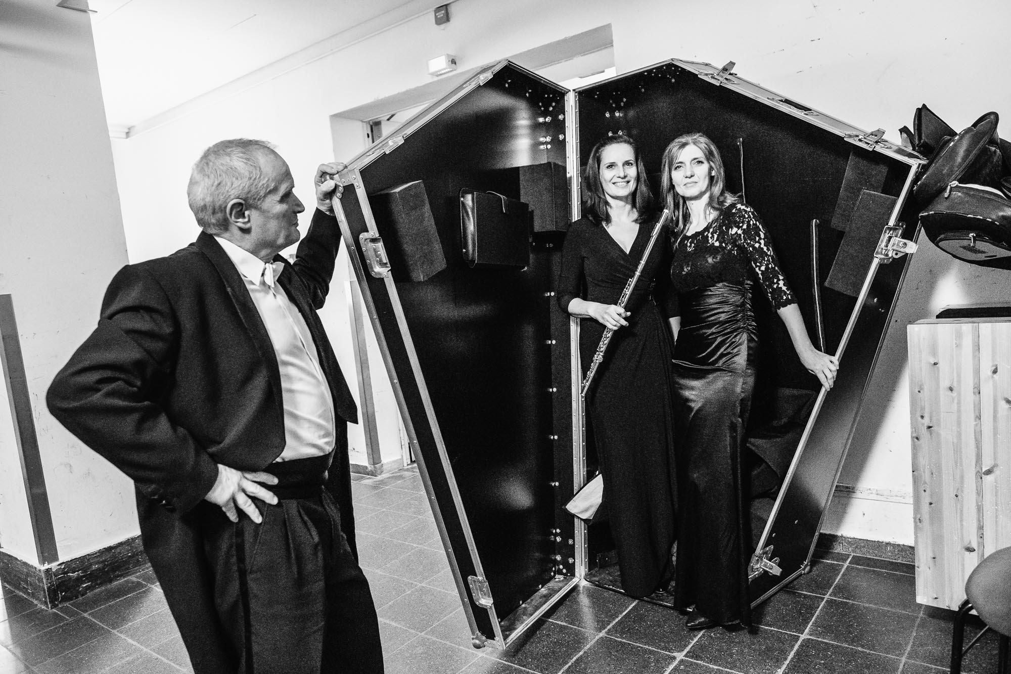 Miriam Kristmannová (v strede) spolu s kolegami Ivanou Boggerovou (harfa) a Tiborom Trnom (kontrabas). Berlín 2019.