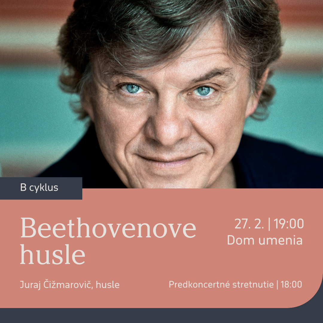 Koncert z abonentného cyklu B s názvom BEETHOVENOVE HUSLE sa uskutoční vo štvrtok 27. februára 2025 o 19:00 v Dome umenia. Cena vstupného je 14/11/8 €, v lóži 18 €. Na predkoncertné stretnutie o 18:00 v Malej sále sa dostanete s abonentkou alebo vstupenkou na večerný koncert. ŠFK pripravila aj verejnú generálku, vstupné je 7 €, zľavnené 5 €. Vstupenky na podujatia ŠFK sú v predaji aj so zľavami 30 percent vo vstupenkovej pokladni Domu umenia od pondelka do štvrtka (10:00 – 12:00, 14:00 – 17:00) a hodinu pred podujatím, ako aj online na webe www.sfk.sk .