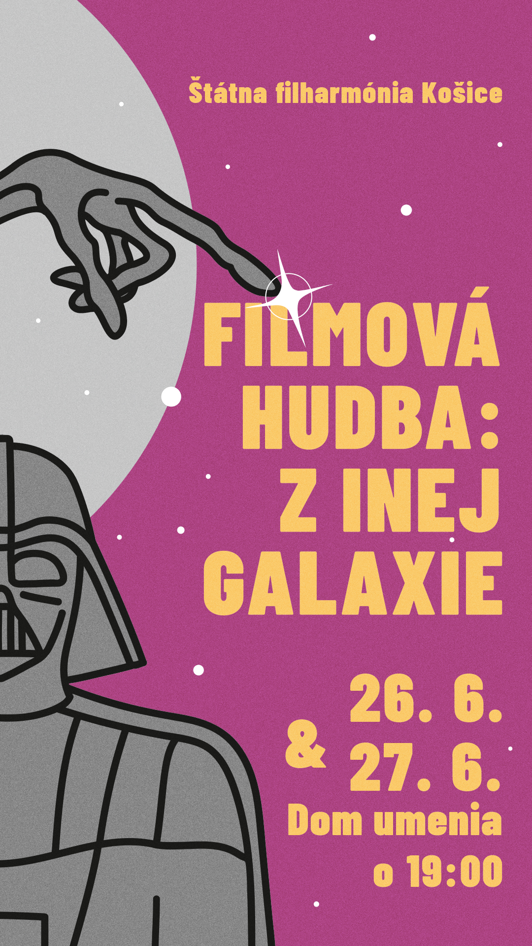 Mimoriadny koncert s názvom FILMOVÁ HUDBA: Z INEJ GALAXIE sa uskutoční v stredu 26. júna a vo štvrtok 27. júna o 19:00 v Dome umenia. Cena vstupného je 22/20/18 € – zľavnené 19/17/15 € – lóža 26 €. Vstupenka na verejnú generálku 26. júna o 10:00 stojí 16/14/12 € – zľavnené 13/11/9 € lóža – 20 €. Predkoncertné stretnutie sa začne v ten istý deň o 18:00 v Malej sále Domu umenia, dostanete na naň s platným lístkom na večerný koncert. Vstupenky na podujatia Štátnej filharmónie Košice si zakúpite aj so zľavami online na www.sfk.sk alebo vo vstupenkovej pokladnici Domu umenia od pondelka do štvrtka (10:00 – 12:00, 14:00 – 17:00) a hodinu pred podujatím.