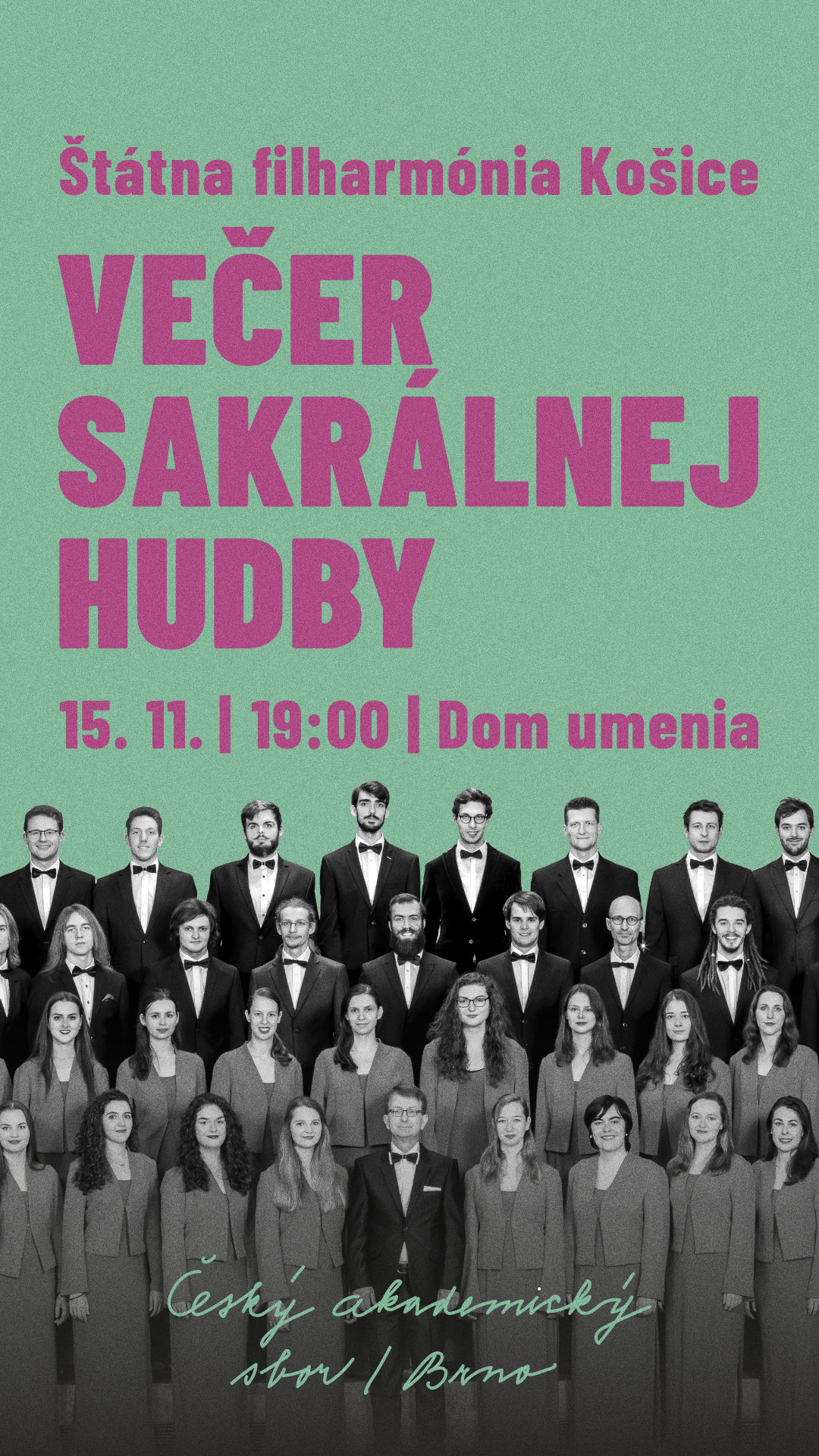 Milovníci vokálno-inštrumentálnej hudby a zborového spevu ocenia Večer sakrálnej hudby, na ktorý pozýva Štátna filharmónia Košice. Koncert v podaní orchestra ŠFK, štyroch sólistov a Českého akademického zboru Brno povedie hlavný hosťujúci dirigent Zbyněk Müller. Na pódiu Domu umenia sa predstavia sopranistka Adriana Banásová, mezzosopranistka Alena Grach Kropáčková, tenorista Martin Šrejma a barytonista Tomáš Šelc. Koncert z abonentného cyklu B s názvom VEČER SAKRÁLNEJ HUDBY sa uskutoční v stredu 15. novembra o 19:00. ŠFK pozýva aj na verejnú generálku o 10:00 a predkoncertné stretnutie o 18:00. Podujatie s podporou Mesta Košice je zároveň súčasťou Festivalu sakrálneho umenia 2023.