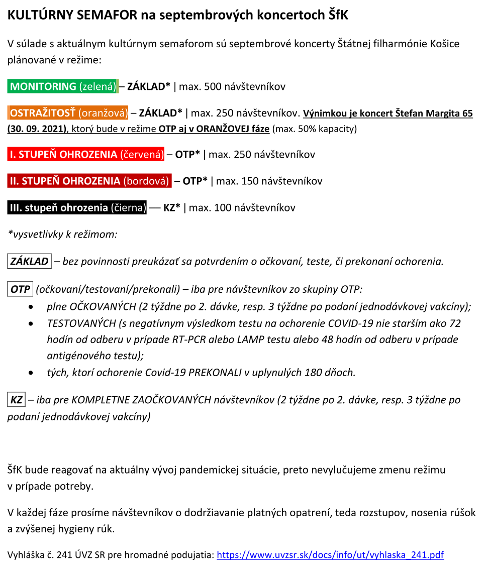 KULTÚRNY SEMAFOR na septembrových koncertoch ŠfK