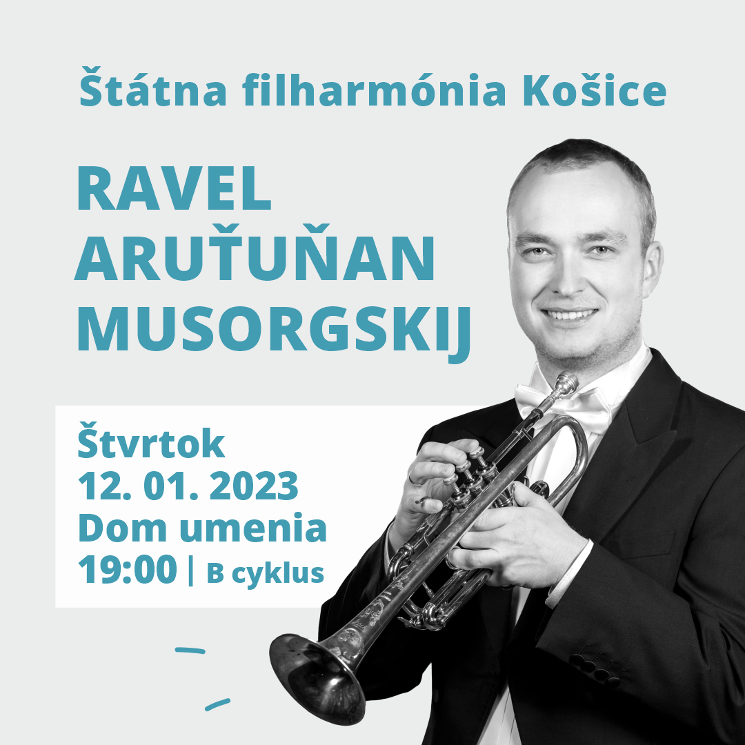 Abonentný koncert B cyklu RAVEL – ARUŤUŇAN – MUSORGSKIJ sa uskutoční vo štvrtok 12. januára 2023 o 19:00 v Dome umenia. Cena vstupného je 10/9/8 €, zľavnené: 7/6/5 €, lóža: 14 €. Vstupenky na podujatia Štátnej filharmónie Košice sú v predaji aj so zľavami vo vstupenkovej pokladnici Domu umenia od pondelka do štvrtka (10:00 – 12:00, 14:00 – 17:00) a hodinu pred podujatím. Vstupenky sú v predaji aj online na webe Štátnej filharmónie Košice alebo cez link https://program-sfk.colosseum.eu/. ŠFK spustila predaj vstupeniek na svoje koncerty cez nový predajný systém, pričom zľavy je už možné uplatniť aj pri online nákupe.