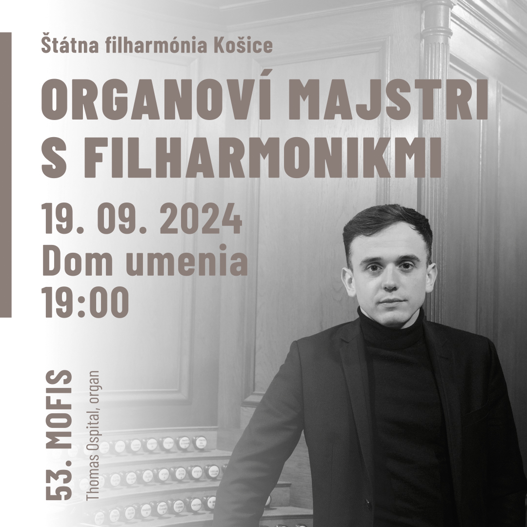 Štvrtkový symfonický koncert patrí do série podujatí 53. Medzinárodného organového festivalu Ivana Sokola (MOFIS). Snaha predstaviť organ v čo najširšom možnom kontexte sa odzrkadľuje nielen v misii festivalu, ale aj v dramaturgii samotného koncertu, ktorú podčiarkne virtuózna hra sólistov. Thomas Ospital pôsobí od roku 2015 ako titulárny organista Grand orgue v Saint-Eustache v Paríži. Marek Štrbák patrí medzi vyhľadávaných sólových i komorných hráčov, venuje sa bohatej koncertnej činnosti doma i v zahraničí a pôsobí aj ako vysokoškolský pedagóg. „Mám radosť, že sa spolu s naším orchestrom na tomto koncerte predstavia dvaja špičkoví umelci a mohutný organ v našej koncertnej sále rozozvučia v pútavej dramaturgii. Tento koncert určite patrí medzi nosné festivalové programy 53. ročníka MOFIS-u,“ vraví generálna riaditeľka ŠFK Lucia Potokárová.