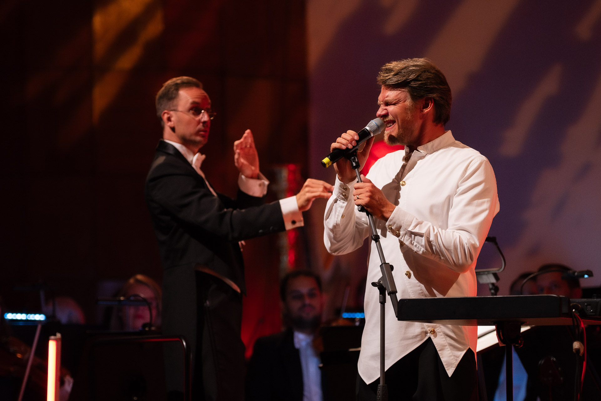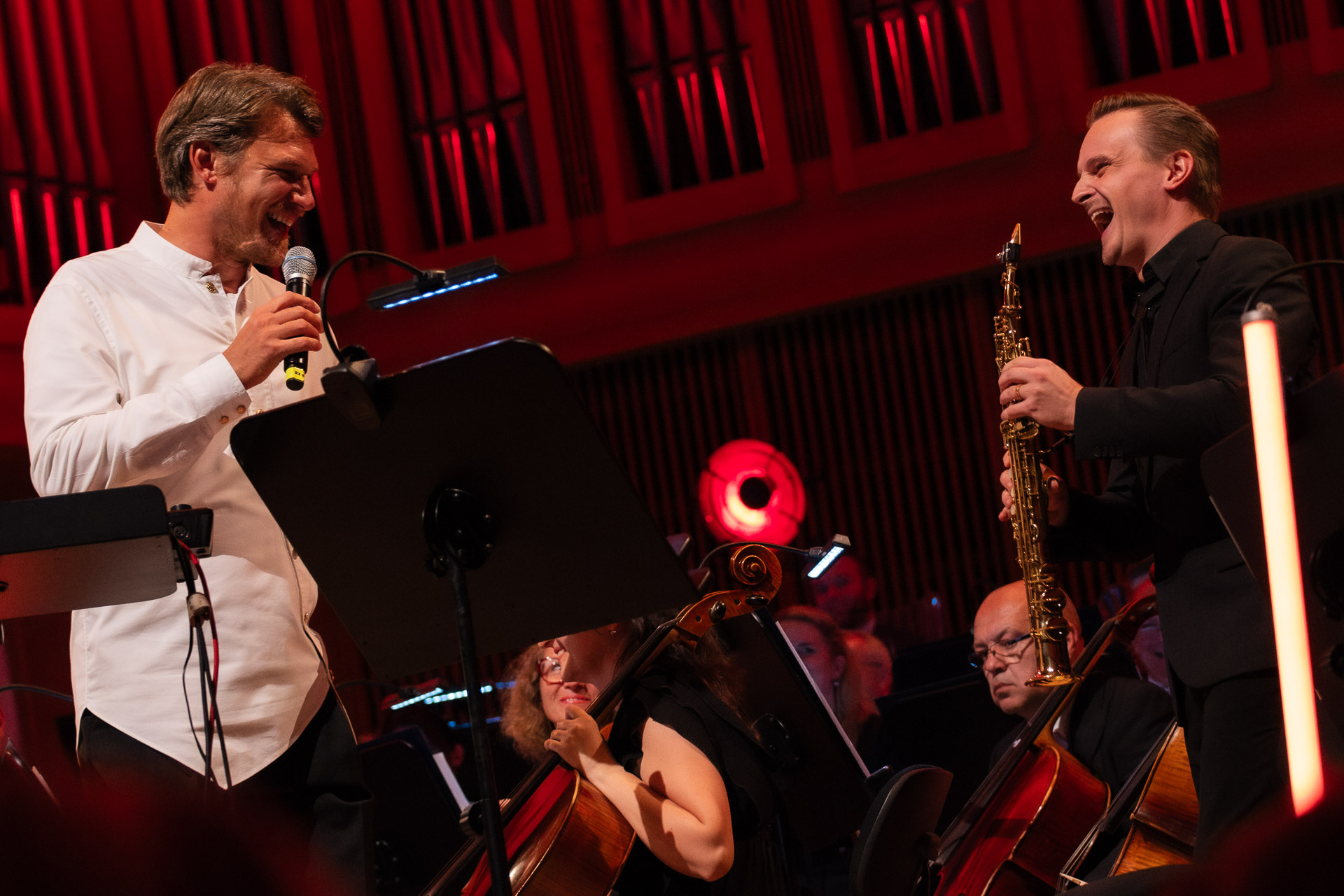 Ty jo, mně to je úplně jedno. Já to nějak nerozlišuju. Samozřejmě, kapela má něco do sebe, to je takový organismus, se kterým jste častěji. Ale pro mě je filharmonie vždycky jako za odměnu, protože je to takový bonbónek v mém hudebním působení. Takže já většinou kapela a pak občas symfonický orchestr.